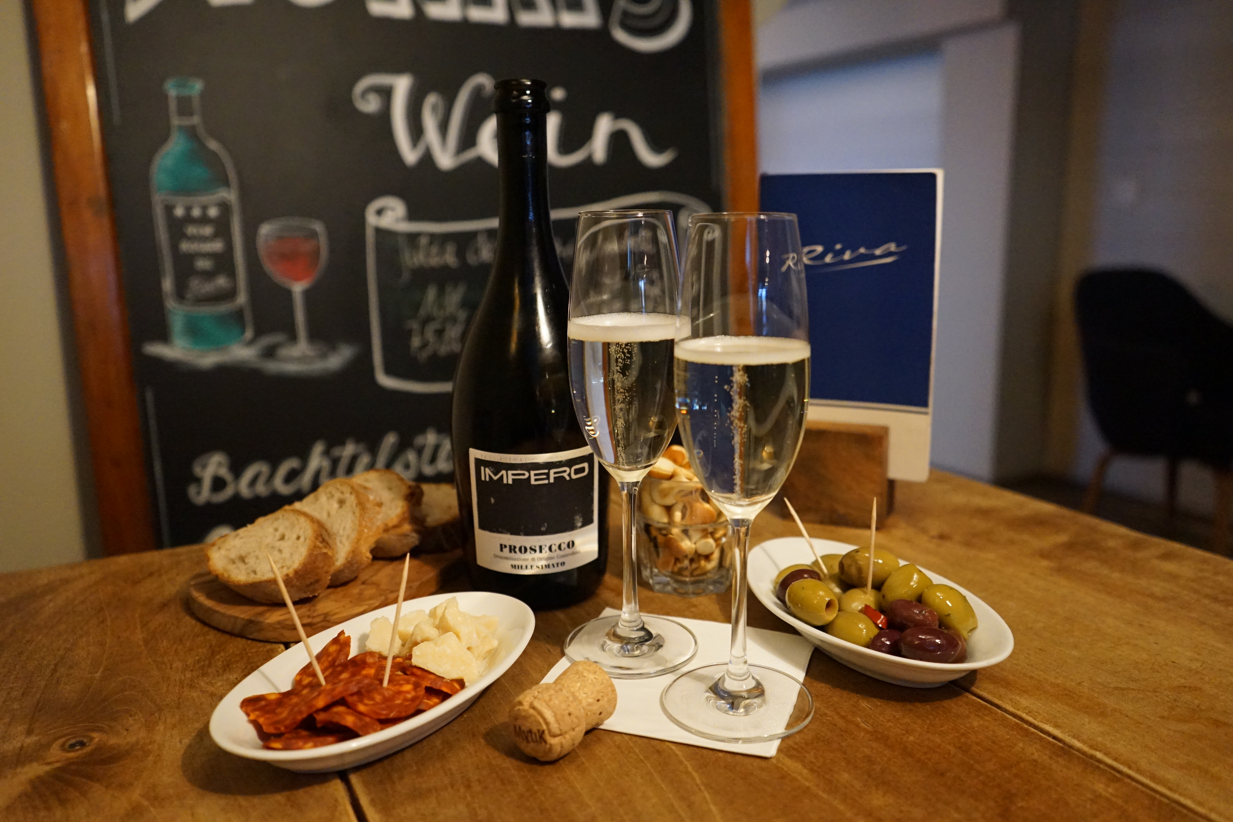Geniesse entspannte Momente in unserem gemütlichen Innenbereich oder auf unserer sonnigen Terrasse. Ob ein exzellentes Glas Wein, ein erfrischender Aperitif oder leckere Aperoplättchen und Snacks – im Riva erwarten dich gute Stimmung und Wohlfühl-Atmosphäre.